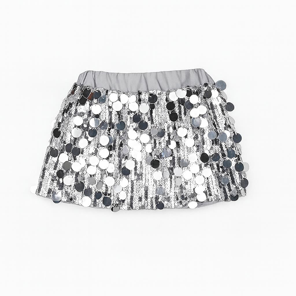 Add sparkle to her wardrobe with this dazzling silver sequin skirt. Designed with oversized reflective paillettes for maximum shine, it’s perfect for parties, celebrations, and special occasions. The soft elastic waistband ensures comfort while the lightweight fabric allows easy movement. Pair it with a simple top for a statement look or layer it with festive pieces for extra glam.
